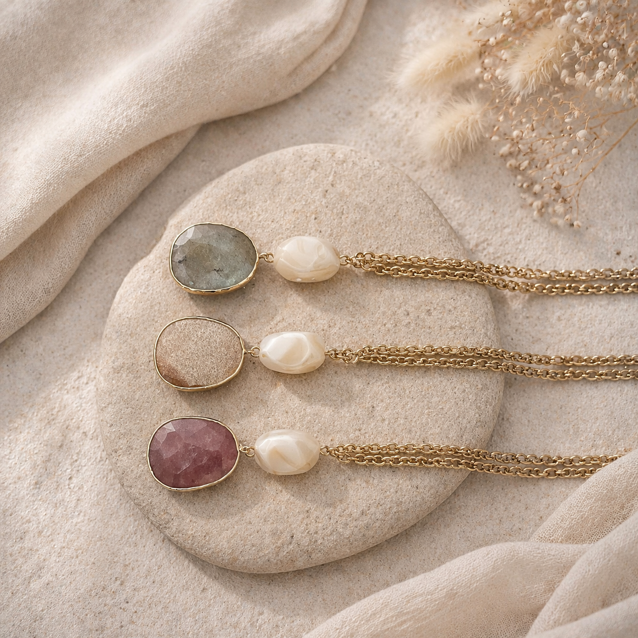 Collier acier inoxydable doré & jaspe beige – Terra Bella