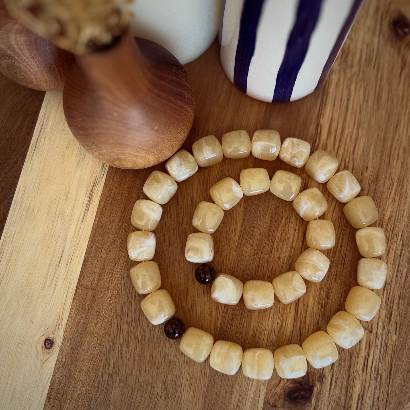 Le bracelet Zahara se compose de perles acryliques lumineuses mises en valeur par une perle détail léopard, signature subtile et sauvage.